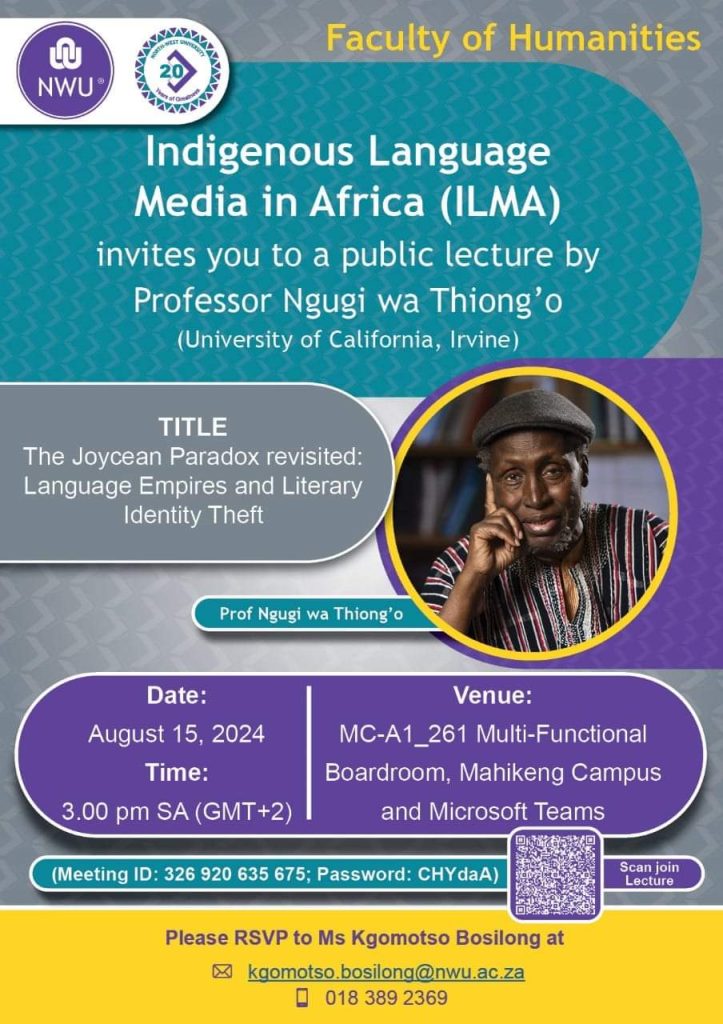 Join us in August as we listen to Ngugi wa Thiong’o, an African literary giant, in another ILMA Public Lecture series this year.